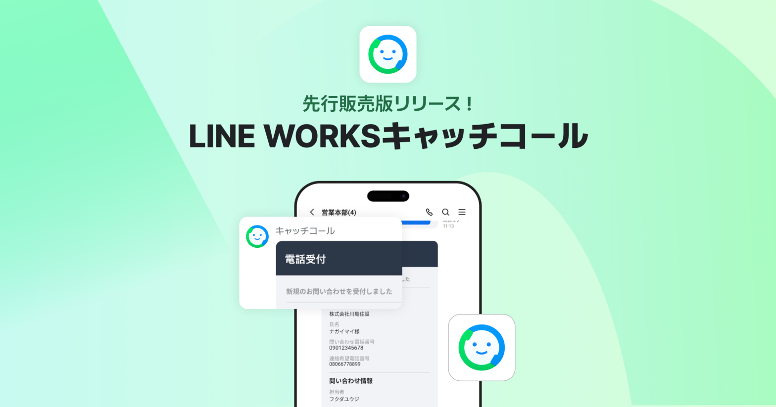 ・LINE WORKSキャッチコールのデモ体験のご利用において発生する通話等の費用は、すべてお客様(発信者)のご負担となります。