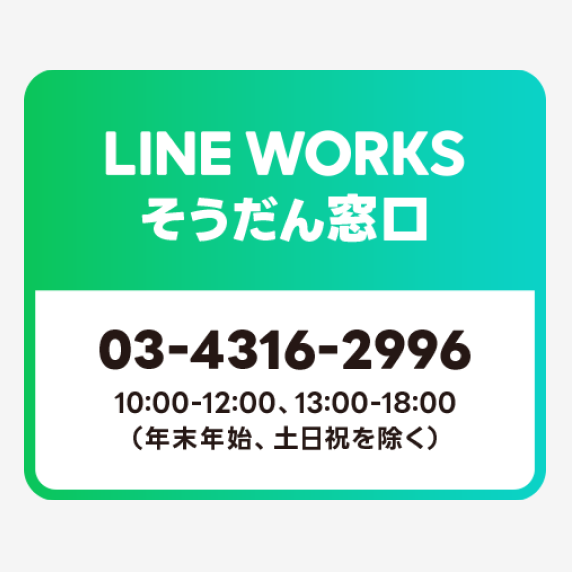 LINE WORKS販売パートナー様経由でLINE WORKSをご利用の場合は、同パートナー様へお問い合わせください。