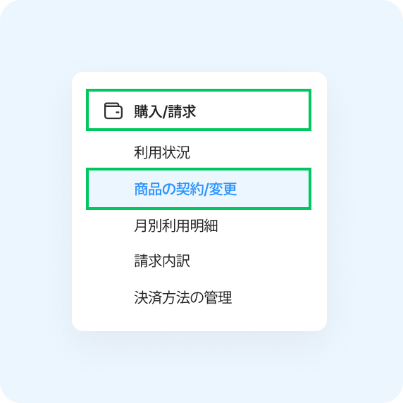 管理者画面「購入/請求」メニューの「商品の契約/変更」から追加できます。