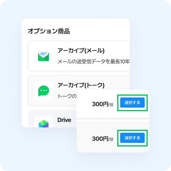 フリープラン、非営利団体向け特別プランではオプション商品を利用することはできません。有償プランをご契約の場合にご利用いただけます。