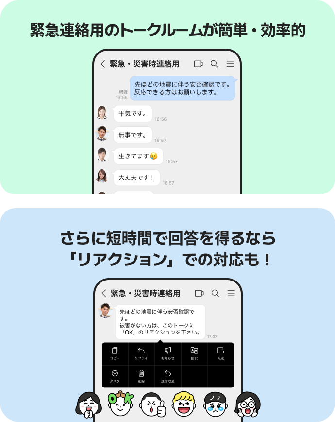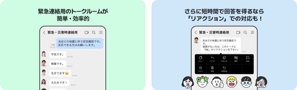 安否確認・状況共有・指示出しを迅速に行うことができます。