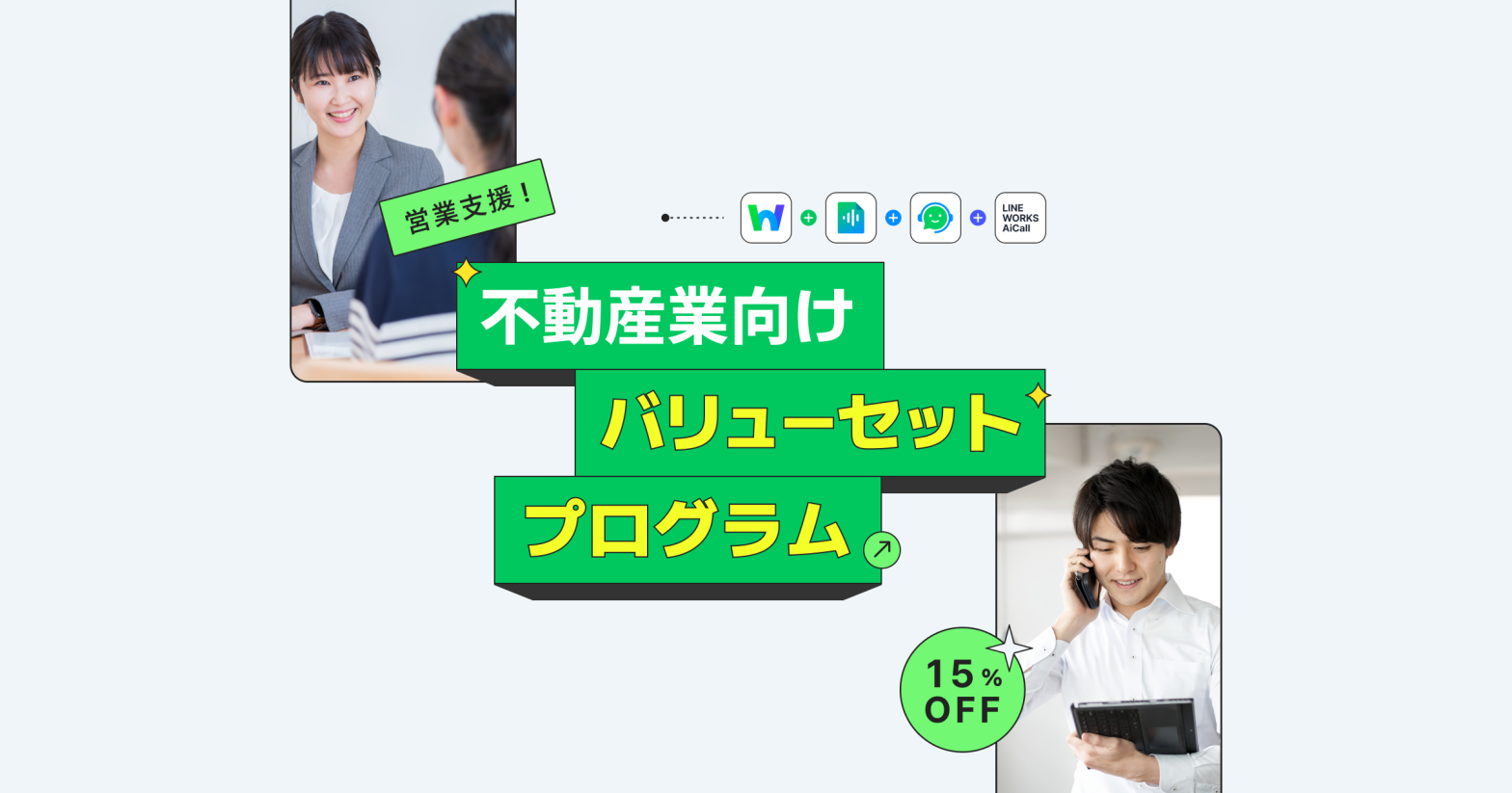 - LINE WORKSサービス(CXトークを含む)、LINE WORKS AiCall、LINE WORKS AiNoteはLINE WORKS株式会社と直接契約の場合のみ適用対象となります。